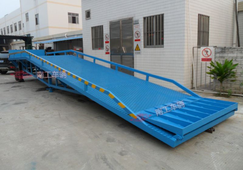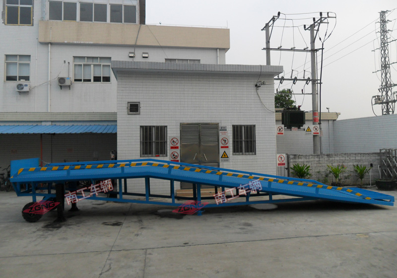 移动式登车桥适用于装卸作业不固定的场所,如工厂、大型仓库等,叉车可通过登车桥从地面直接驶入货车内部进行作业。应用场合:集装箱码头叉车货车装卸货。